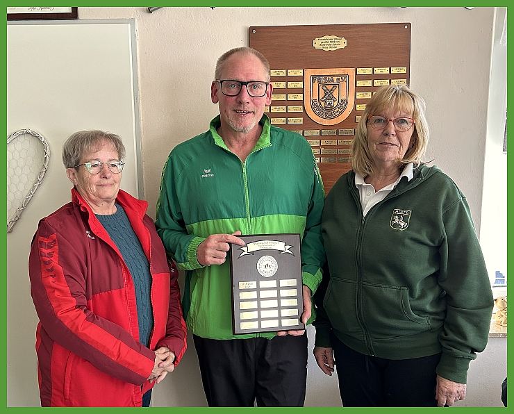 Anke Janssen und Ippe Reuss bekommen ein Geschenk vom Staffelleiter Bernhard Paul. Dieser wiederum bekommt eine Aufmerksamkeit vom Schiesskreis-Vorsitzenden Wolfgang Hehl für seine gute Staffelführung. Aber auch Albert Weerda wird für seine digitale Verarbeitung und Auflistung der Ergebnisse vom 1. Vorsitzenden beschenkt. Ebenso Diderike Jonza vom SV Loppersum für die Bewirtung am Finaltag. |